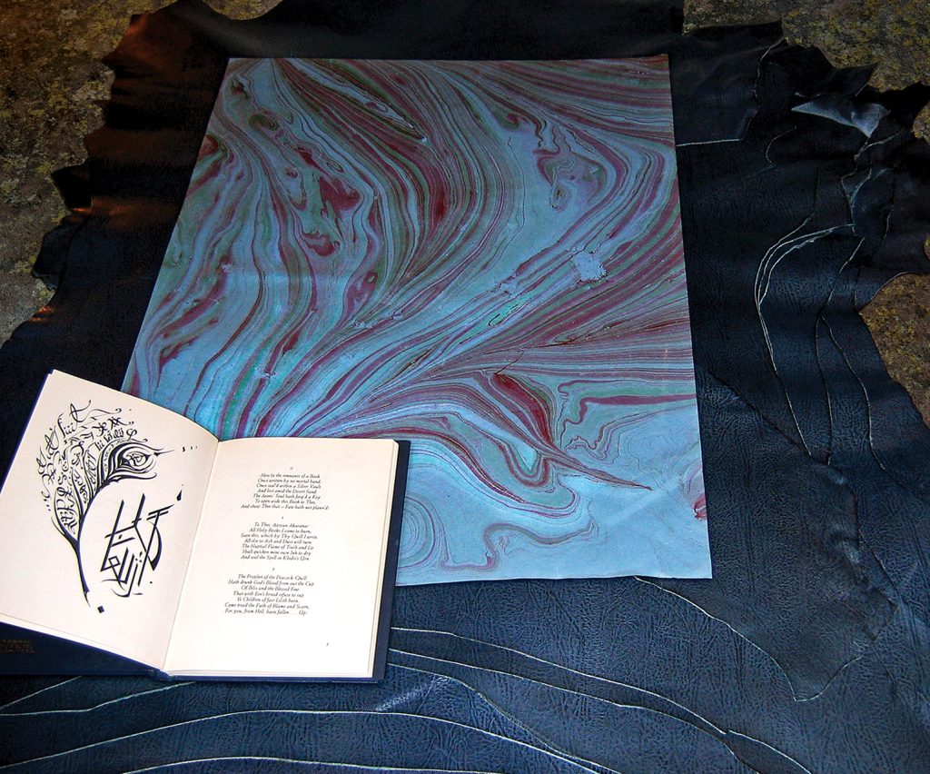 Full midnight-blue morocco in slipcase, blind stamped with a cipher of the Wisdom of the Opposer, limited to 72 copies.